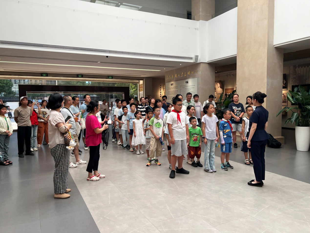 当苏超赛场的欢呼声此起彼伏,8月23日至24日,常州三杰纪念馆推出“苏超”赛事“常宝”便民服务——“惊雷·回声”“觅渡·追光”公益红色研学线路,4场活动共吸引100组亲子家庭、近300人次沉浸式参与,在红色记忆与非遗技艺的交融中,留下了一段段充满意义的亲子时光。 “惊雷·回声”——刻纸传情忆先烈 8月23日,在张太雷纪念馆,25组“惊雷·回声”研学线路的首批亲子家庭早早到场,带着期待开启当天的体验。这场专为9—15岁孩子设计的活动,用“故事讲解+沉浸式短剧+红色非遗”的组合拳,让革命故事变得鲜活。 “张太雷29岁就为革命献出了生命,他写下的‘愿化作震碎旧世界的惊雷’至今读来仍让人热血沸腾……”讲解员用一个个生动的故事片段,让孩子们跟着太雷的足迹,走进那个风雨同舟的年代。沉浸式短剧《挚友同行》,演员们用细腻的表演还原了张太雷与同学吴南如的真挚情谊,不少孩子悄悄拉着家长的手,眼神里满是敬佩。 国家级非遗——金坛刻纸体验项目直接让现场氛围“热”了起来。从如何握刀、控制力度,到怎样避免纸张破损,非遗老师耐心地教大家如何刻好人物。“原来刻纸这么考验细心!”11岁的郭凡宇来自新北区龙虎塘小学,只见他握着刻刀,小心翼翼地沿着线条雕琢,半小时后,一幅太雷画像的刻纸作品终于完成,他举着作品兴奋地分享:“这个活动太有趣了,下次我还来!” 当天两场活动,50组亲子家庭在一刀一纸间,既感受了非遗的魅力,也把红色记忆刻进了心里。