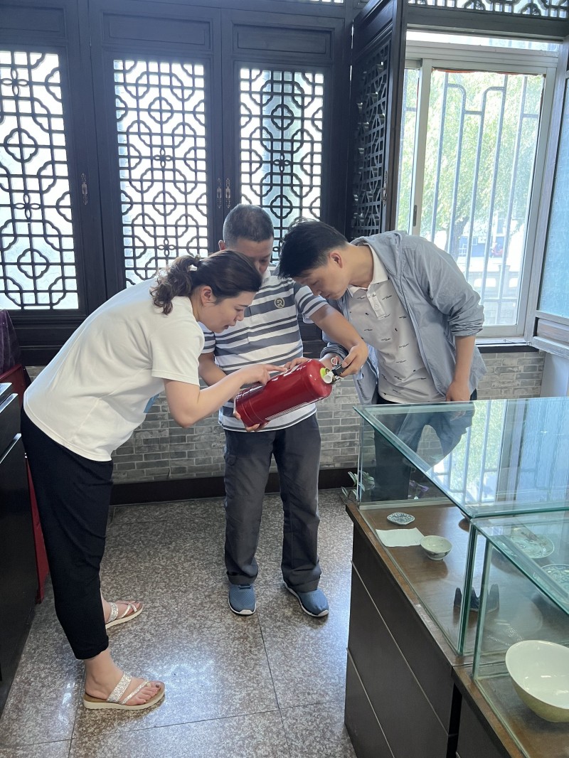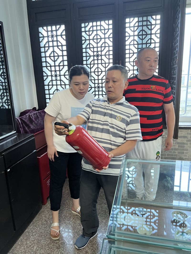 常州市文物商店根据市安全生产委员会办公室《关于开展2022年“安全生产月”活动的通知》,响应习近平总书记的号召,深入排查安全风险隐患,扎实推进问题整改,集中开展宣传教育活动,增强全系统安全意识,提升行业安全素质,本次活动主题为:“遵守安全生产法,当好第一责任人”。 2022年6月14日,常州市文物商店全体员工和领导,一起对单位的安全情况进行了检查,检查了单位的电源插座以及灭火器等等。活动现场图片如下: |