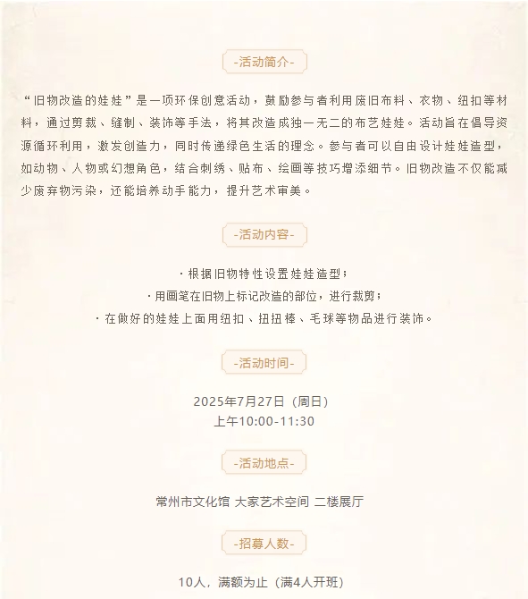 儿童艺术季|“她和她的朋友们”主题社教活动:旧物改造的娃娃