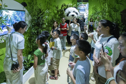 “滚滚来袭”特展厅流动课堂,开启科普知识大闯关 “滚滚来袭——揭秘大熊猫的前世今生”科普特展现场,多个原创体验项目妙趣横生。展厅流动课堂围绕不同主题,深入浅出解读大熊猫的演化史诗与生存智慧,让观众边学、边看、边玩。夜幕降临,“滚滚来袭”夜宿营地化身为小小保护者的冒险乐园,“小勇士们”在探险地图的指引下协作搭建栖息地模型,掌心的手工皂渐渐显出国宝憨态……