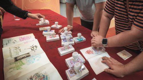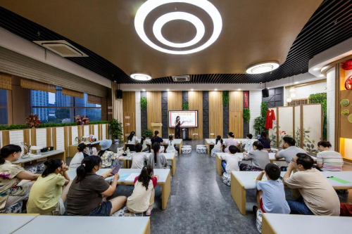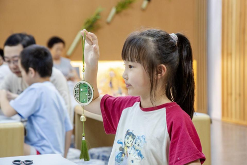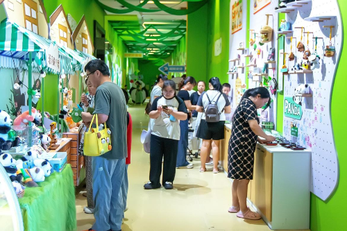 知行学堂,创意阅读剧场正在进行 金玉重器与黑白萌兽在夏夜相遇,博物馆将厚重的知识拆解为可触摸的体验。而在知行学堂内,手作体验更是热闹非凡:“贴金轴饰”冰箱贴创作、“福禄滚滚”挂件制作、熊猫储蓄罐彩绘……历史文化的深厚底蕴与自然科普的生动趣味在此交织。 “面对暑期观展热潮,今年升级版的‘常博奇妙夜’不仅是开放时间的延长,也是教育体验的‘脑洞大开’,通过形式多样、寓教于乐的创意活动,真正满足每一个走进这里的好奇心。”常州博物馆开放部副主任王艳介绍道。 文创空间:把奇妙记忆带回家 博物馆的文创展区,永远是人气爆棚的“战场”。“这款熊猫书签设计感很强,DIY扭蛋机挂件精巧有趣,必须多囤几套送朋友!”在“滚滚来袭”特展文创区,刘女士展示着心仪的战利品,笑意盎然。像她一样排队选购的观众络绎不绝,热门文创多次补货仍供不应求。
