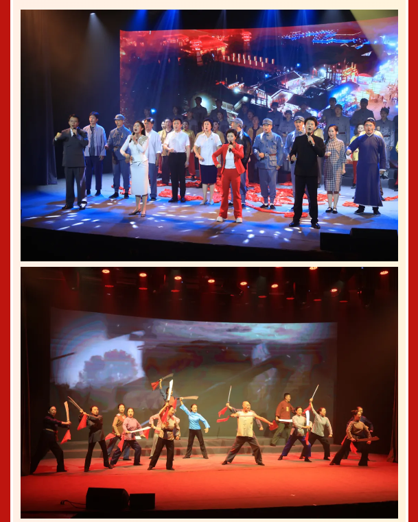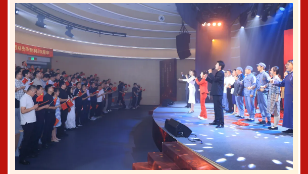 9月3日,“烽火龙城”纪念中国人民抗日战争暨世界反法西斯战争胜利80周年主题党日活动在常州市文化馆大家剧场举行。全馆党员职工,通过观看中国人民抗日战争暨世界反法西斯战争胜利80周年纪念日阅兵直播以及由常州市文化馆创作排练的“烽火龙城”——沉浸式党课,共同回顾那段烽火连天的峥嵘岁月,致敬英雄、铭记历史、展望未来。 “烽火龙城”——沉浸式党课以常州在中国革命和抗战历史时期的典型事迹事例为主线,《血染塘马》《东进,东进》《千古忠魂》《壮歌百年》四个单元,将塘马战役、茅山新四军指挥部成立、一代抗倭名将塘荆川、瞿秋白翻译国际歌等常州红色史实,通过讲述、朗诵、情景剧、舞蹈、合唱等多种艺术形式融合,结合舞台(场地)多维环境,以创新形式诠释党课内容,为全馆职工及现场观众带来一次震撼心灵的红色洗礼。