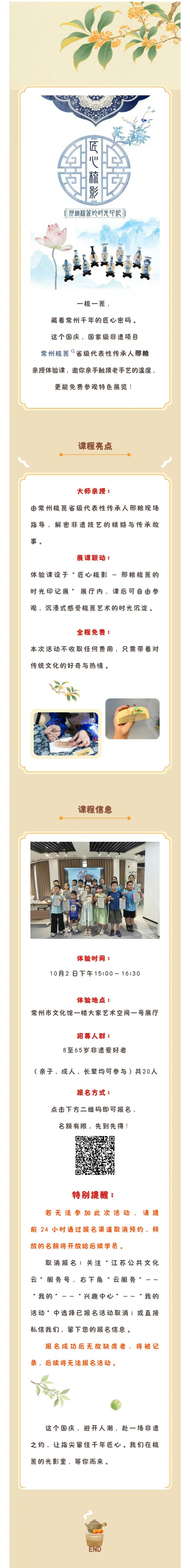【公益招募】一梳一篦藏匠心!展课一体,常州非遗大师课即将开课