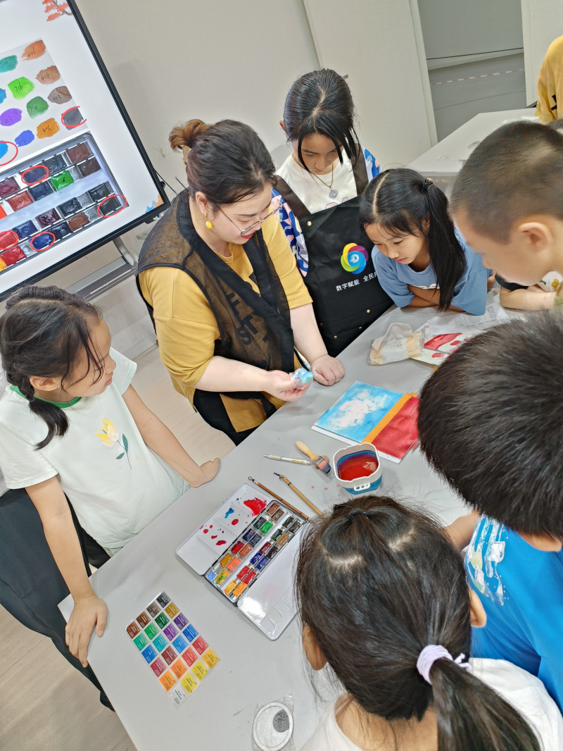 10月3日的成人专场活动现场,艺术爱好者们互相交流创作心得,分享对祖国的热爱之情,气氛热烈而融洽;10月5日的亲子专场则洋溢着童真与温情,在专业美术老师的引导下,孩子们与家长携手创作,用稚嫩的笔触描绘心中的祖国。一幅幅充满童趣的水彩作品,不仅展现了孩子们丰富的想象力,更传递着浓浓的爱国情怀。