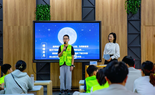 小朋友讲“嫦娥奔月”的故事 朱亚芳摄 “后羿因为射下天上的九个太阳,为民除害,深受天下百姓的尊敬和爱戴,后来他得到了两枚仙丹……”10月6日,“与苏轼共度中秋:何以长江何似人间”课堂上更是热闹,一位小朋友正在讲台上声情并茂地分享中秋故事,稚嫩却充满激情的声音回荡在教室里,台下的观众听得津津有味,不时发出阵阵惊叹和欢笑。进入手工制作环节,孩子们小心翼翼地拼接粘贴,家长们则在一旁耐心指导。不一会儿,一只只造型可爱、色彩斑斓的兔子花灯在孩子们手中诞生,点亮了教室的同时,也点亮了这个充满传统文化韵味的中秋佳节。