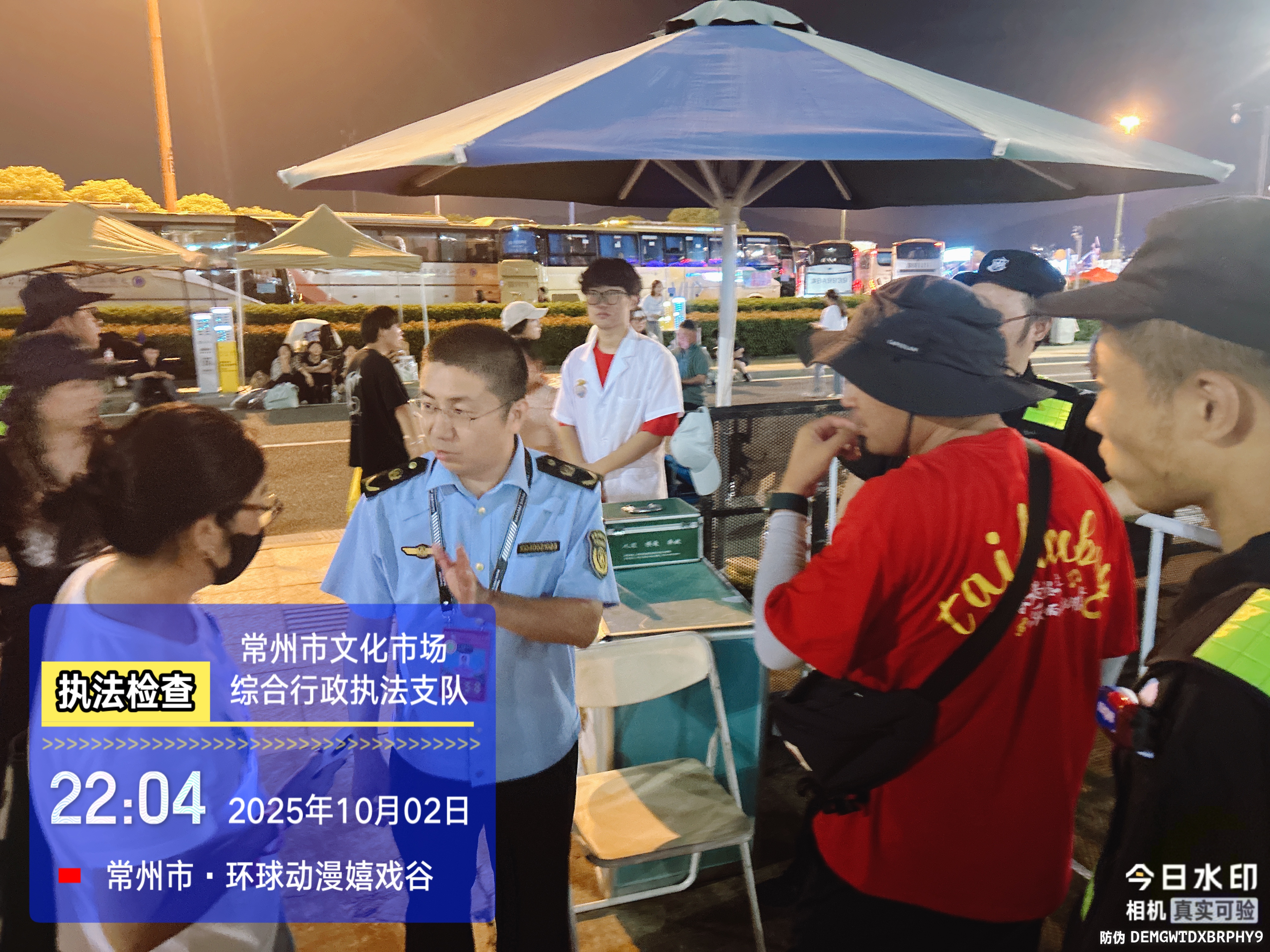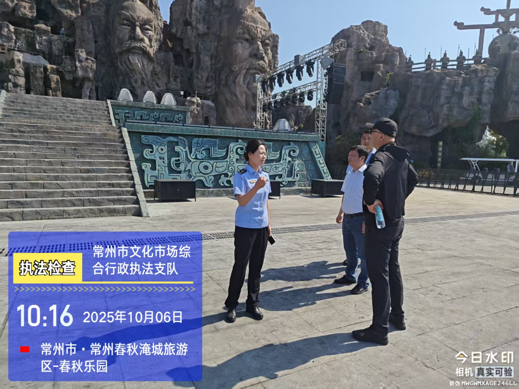 为营造安全、有序、繁荣的假日环境,确保国庆中秋节假日期间文旅市场平稳运行,常州市文化市场综合行政执法支队所有人员在整个假日期间全面做好值班值守工作,100%全员投入一线,支队以最高标准锚定目标、最严要求压实责任、最实举措破解难题,为假日文旅市场筑牢坚实可靠的安全防线。 一是服务保障大型营业性演出活动。重点围绕“第十一届太湖湾音乐节”,支队抽调精干力量组建驻点服务保障专班,全天候现场值守,配合属地及公安等部门做好服务管理,协助维护现场秩序,同步开展安全巡查、疑问解答等便民服务,快速响应突发需求,让演出安心、观众舒心。
