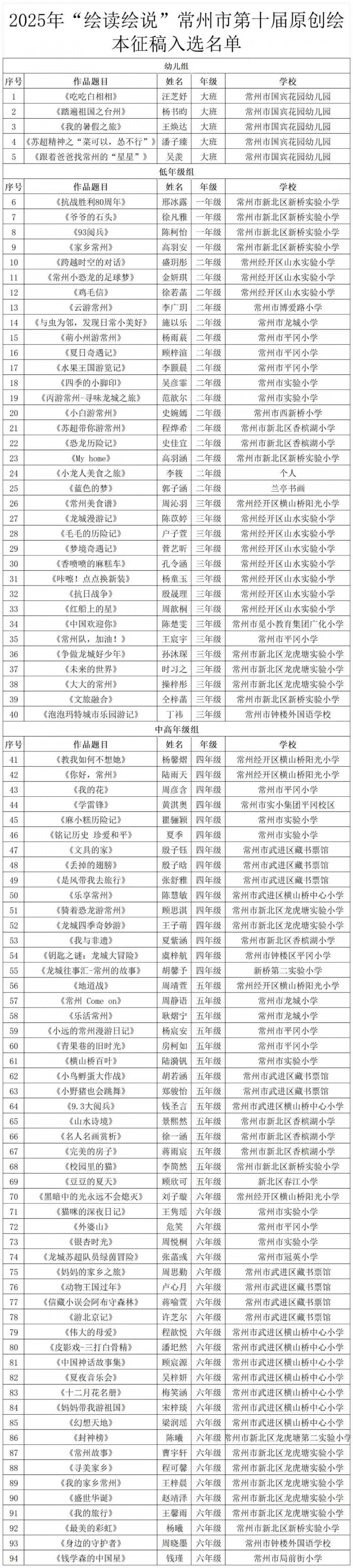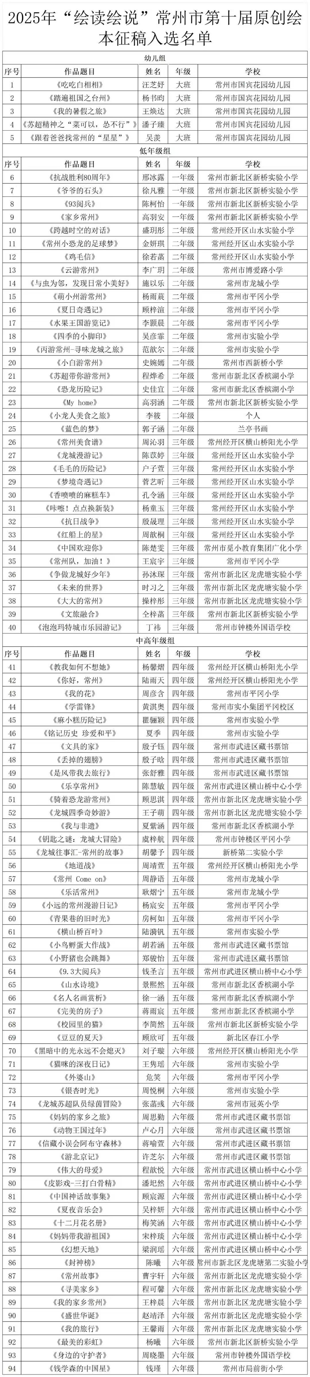 关于公布2025年“绘读绘说”常州市第十届原创绘本征稿入选名单及收件的通知