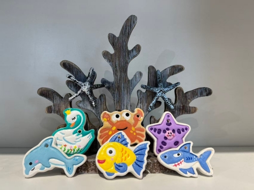 方寸之间,瓷土为纸,彩墨为笔,用双手赋予海洋动物们新的生命,用创意点亮海底世界。