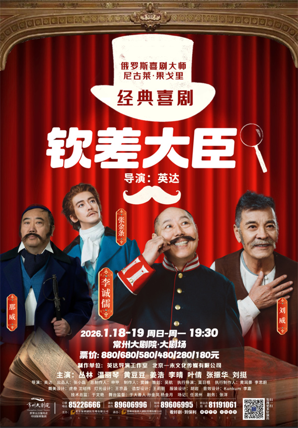 新年将至,好戏连台。常州大剧院2026新春演出季即将迎来一部备受瞩目的重磅大戏——经典喜剧《钦差大臣》明星版。该剧由著名导演英达领衔,携手李诚儒、刘威、张金条、那威、丛林、温丽琴、黄豆豆等一众实力派演员倾力打造。演出将于明日(12月12日)中午12:00正式开票,并于2026年1月18日至19日登陆常州大剧院,连演两场,为新年注入第一道欢乐风暴。