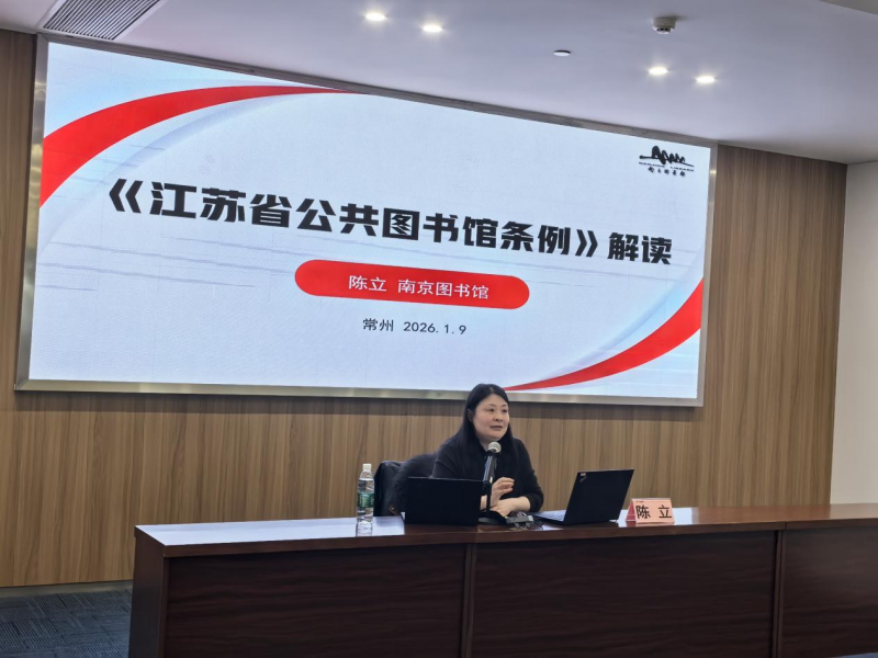 本次培训的重要环节之一,是1月9日下午由南京图书馆副馆长、研究馆员陈立带来的《江苏省公共图书馆条例》解读。作为公共图书馆领域的专家和《条例》制定的参与者,陈立副馆长从条例制定的背景意义、制定过程、条例框架、核心条款、实施要求等方面进行全面深入的解读,结合行业发展实际与典型案例,剖析了条例对公共图书馆建设、服务、管理等各环节的规范指引作用,并就如何推动条例落地见效、提升公共文化服务法治化水平与学员展开交流探讨。其专业的解读、深厚的行业积淀让现场学员深受启发,有效帮助学员准确把握条例精神实质,为今后依法开展图书馆工作、提升服务规范化水平奠定了坚实基础。