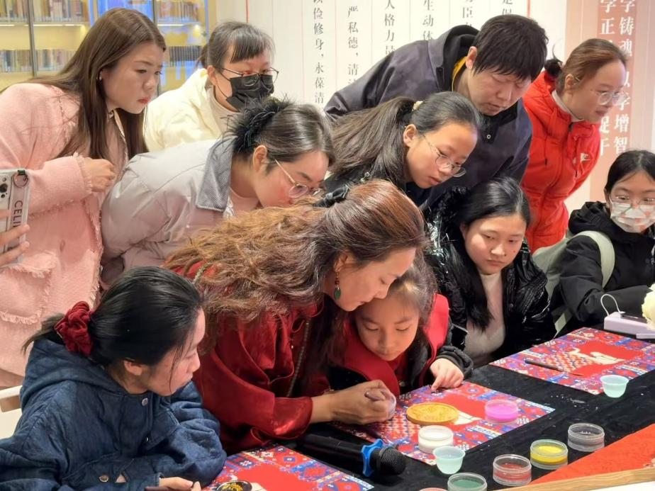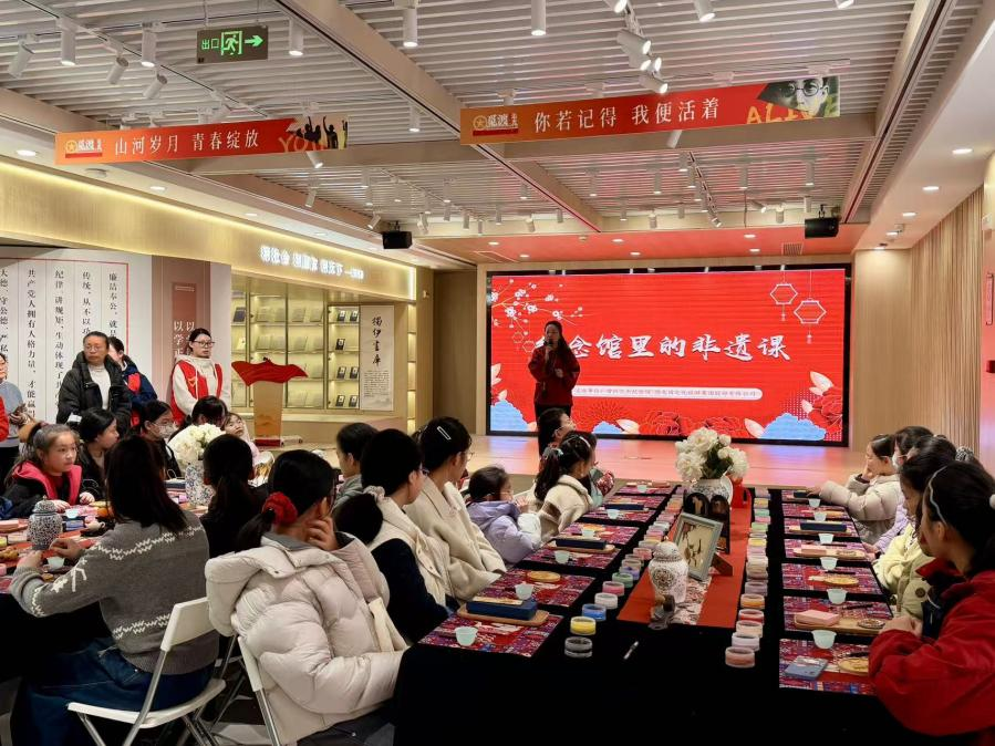 “纪念馆里的非遗课”春节专场火热开展,扎染、拼豆、篆刻、掐丝珐琅、螺钿梳手作轮番上线,吸引近200组亲子家庭前来体验。小朋友们化身“小小非遗传承人”,亲手刻制马年福字印章、制作彩色扎染围巾、拼出福字拼豆作品,一位小朋友拿着自己的篆刻作品爱不释手:“亲手刻马年福字,非常有趣,我一定要好好收藏起来!”非遗技艺与红色精神在指尖交融,让传统文化在新春焕发出全新生机。