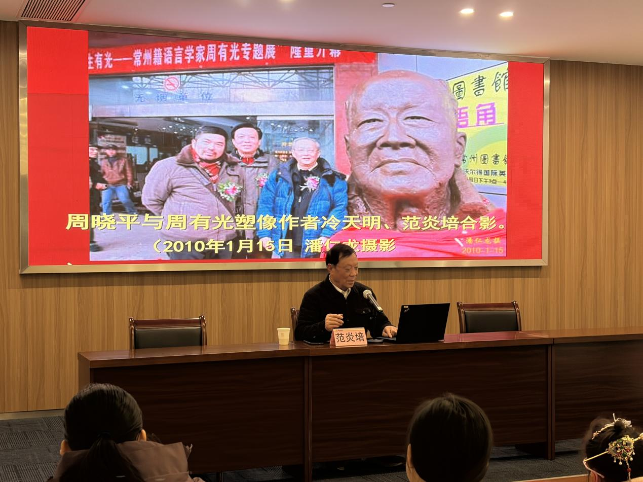 为纪念常州籍著名学者、汉语拼音主要制定者周有光先生诞辰120周年,2026年1月10日下午,“文亨讲堂·常州地方文化系列讲座”第八讲在常州图书馆七楼报告厅举行。常州市社科院历史文化研究员范炎培应邀主讲《周有光与汉语拼音——纪念周有光诞辰120周年》,带领听众重温拼音发展历程,缅怀先生文化担当。