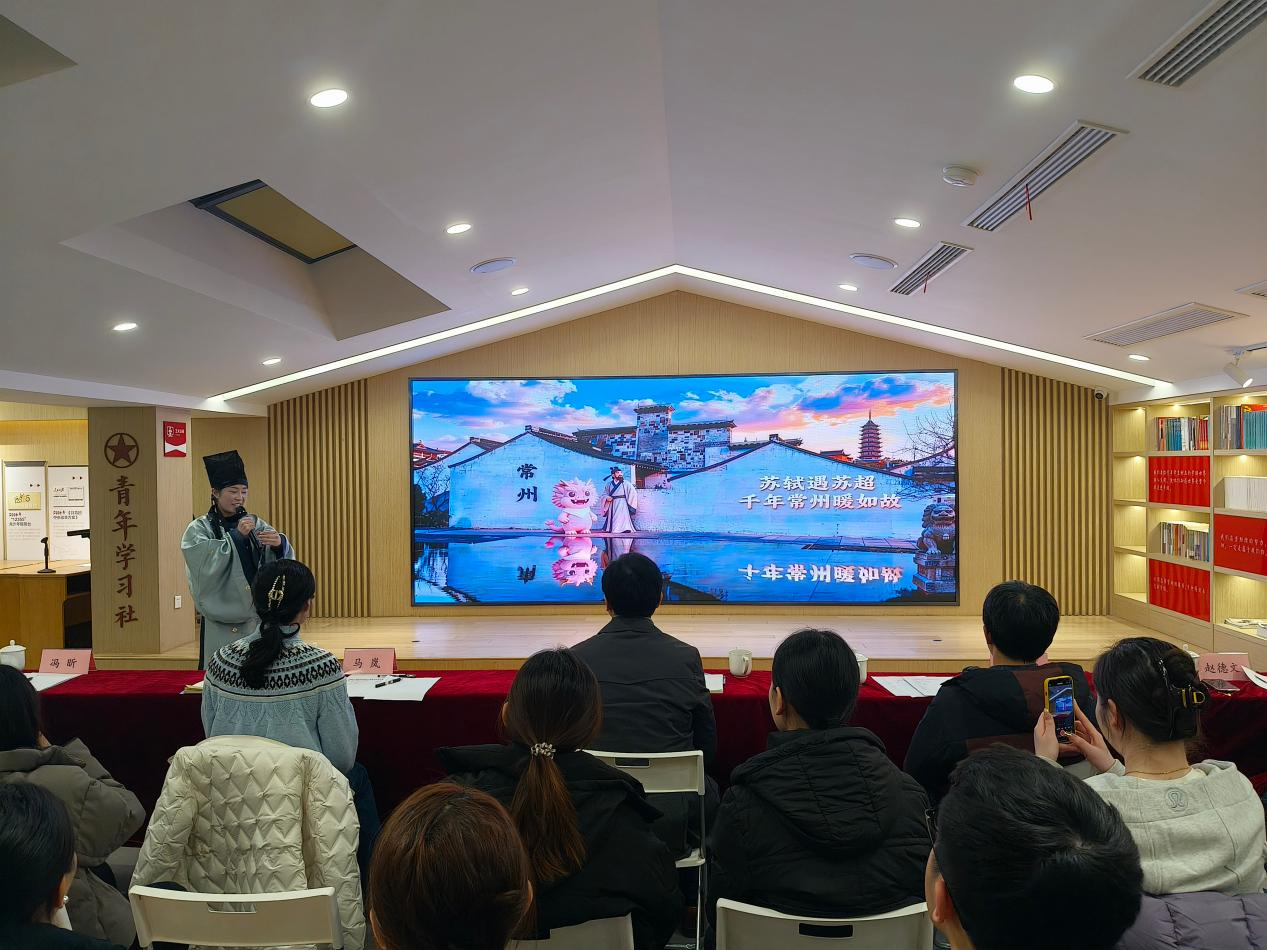 谁能想到,如今在台上把苏东坡演活了的李晓飞,曾为了拿捏古人语气、吃透地方方言,把“每日一练”做成了刻进日常的沉浸式修行,把“展板背后的故事”变成与古人的跨时空对话,下班后对着镜子一遍遍校准步态,就连吃饭时都在琢磨如何让千年文字沾着生活的烟火气。那些对着展板反复练习的时光,那些被同事调侃“走火入魔”的日常,最终化作《千年常州暖如故》里的生动演绎,成了同事们争相学习的范本,更让她在年终展示中凭借创新表达脱颖而出。
