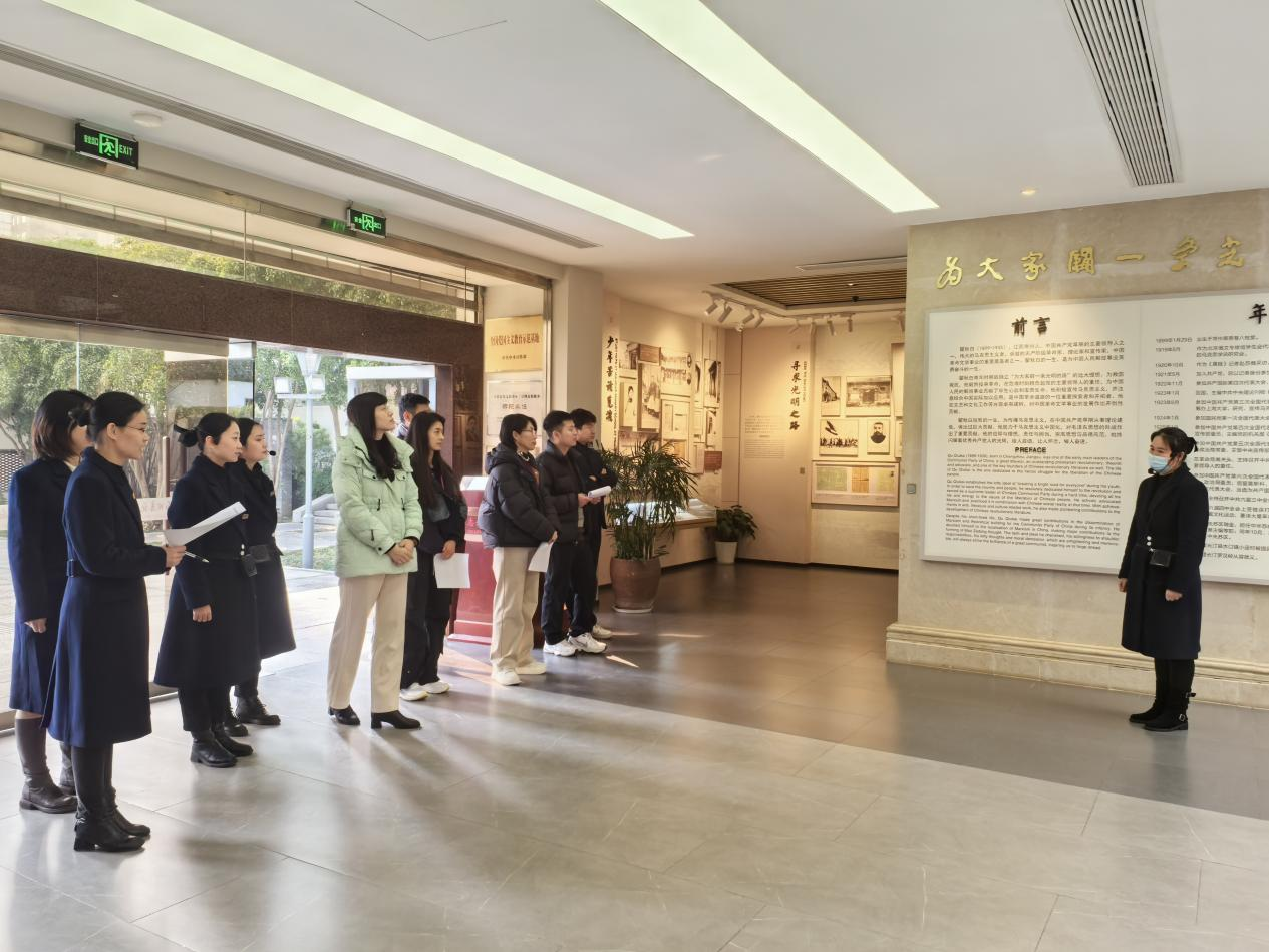 曾经拿着稿子手抖、声音细若蚊蚋的俞宝宁,如今站在舞台中央讲述瞿秋白创作《国际歌》时,眼里满是炽热的光。一年前刚入职时,她连拿着稿子读都会紧张得磕磕绊绊,是“每日一练”时前辈蹲在展厅里逐字纠正语气,是“月度随团考核”时同事们毫不吝啬的掌声与鼓励,是“日月季年”培训计划里一次次不放弃地打磨,让她从“不敢说”到“讲得活”,从念稿子的“新人”蜕变成能打动人心的“讲述者”。当她讲到瞿秋白“为大家辟一条光明的路”的抉择时,声音哽咽却依旧坚定。台下响起的阵阵掌声,正是对这份成长最动人的礼赞。