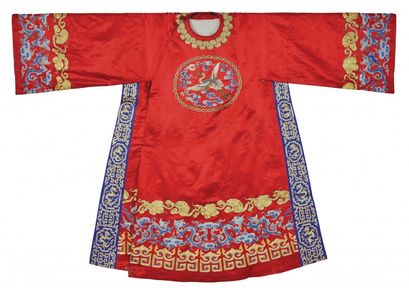 大红缎混绣改良官衣 20世纪50年代 陈申 藏