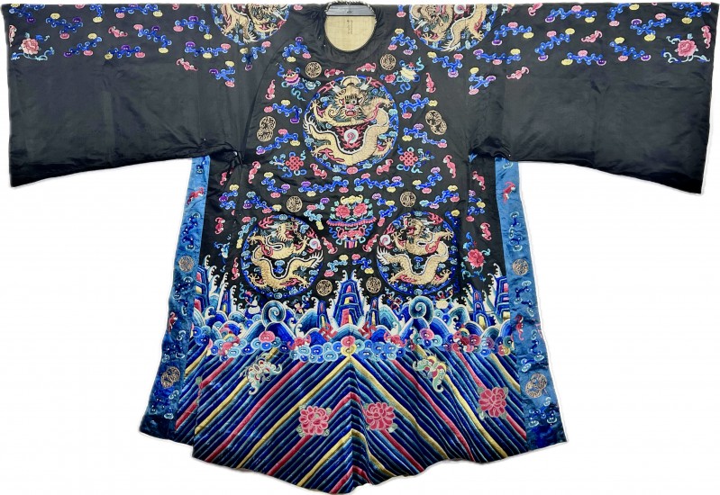 黑缎彩绣大龙蟒 清 陈申 藏