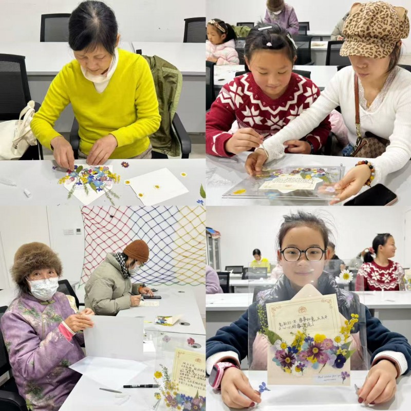 数字信息飞速传递的当下,执笔书写愈发显得难得。活动现场,参与者们在老师指导下,将信封与信纸作为情感载体,不仅书写下对新一年的寄语或是对过往的梳理,更巧妙融入了干花的自然之美。压制的花瓣与叶片在纸面上定格,仿佛将时间的痕迹凝固于方寸之间,赋予信件独特的生命力与艺术感。活动以“昨日絮语”与“明日晨曦”为创作线索,鼓励大家在这一过程中完成一场与自我的深度对话。当饱含心意的寄语被精心封缄,每一个亲手设计的作品都不再只是传递信息的容器,而是升华为一件件可触摸、可凝视的“时间纪念物”。参与者们在这一笔一划、一花一草的拼贴与书写中,将对情感表达的郑重态度融入其中,于细微处感悟时间的流转与生活的美好。