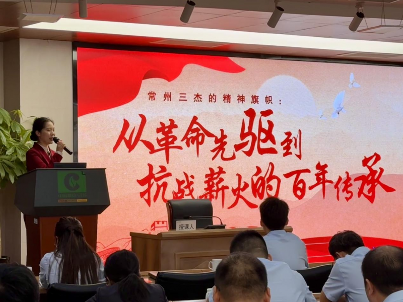 在武进区烟草局,宣教员以《“常州三杰”的精神旗帜:从革命先驱到抗战薪火的百年传承》为主题开展宣讲,讲述瞿秋白在长汀罗汉岭下从容赴死、以《国际歌》点燃斗争火种,张太雷在广州起义中坚守信念、播撒革命希望,恽代英在狱中坚守信仰、以思想启迪后人的事迹,深刻诠释民族精神的内在关联,让在场青年职工深刻感悟革命先辈的家国情怀与担当。